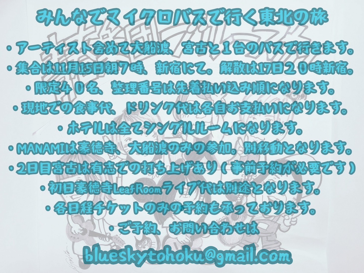 MANAMIの出演は豪徳寺、大船渡のみ。 別移動となります。